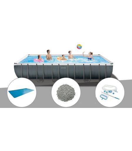 Kit piscine tubulaire Intex Ultra XTR Frame rectangulaire 7,32 x 3,66 x 1,32 m + Bâche à bulles + 20 kg de zéolite + Kit d'entretien