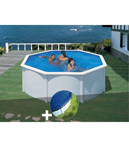 Gre Kit piscine acier blanc Gré Fidji ronde 3,70 x 1,22 m + Bâche hiver