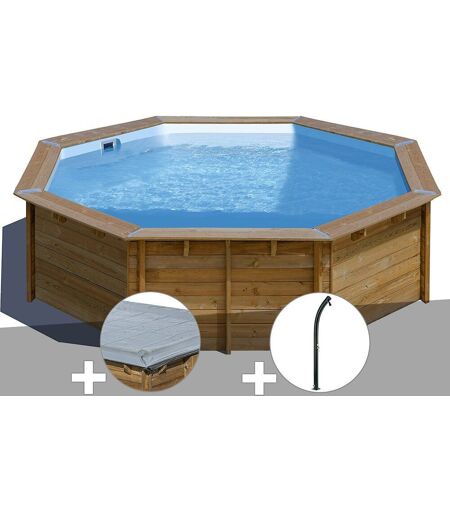 Gre Kit piscine bois Gré Violette Ø 5,00 x 1,27 m + Bâche hiver + Douche