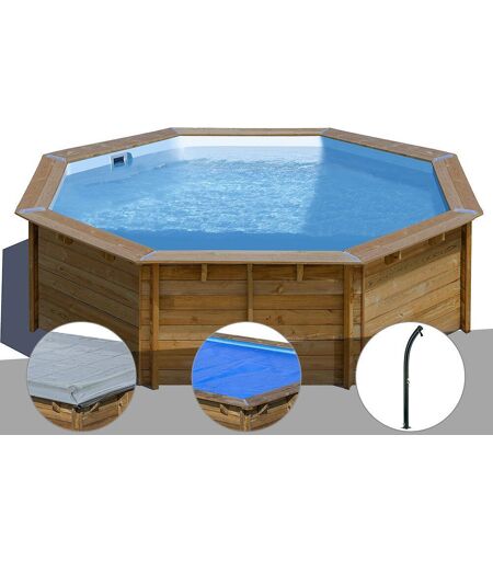 Gre Kit piscine bois Gré Violette Ø 5,00 x 1,27 m + Bâche hiver + Bâche à bulles + Douche