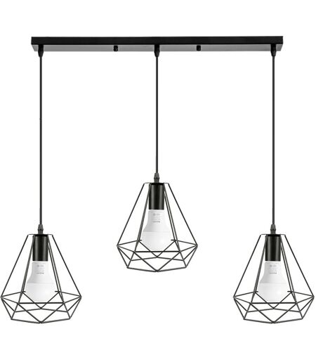 SKECTEN Lustre Suspension Forme Diamant Barre 3 Lampes Abat-jour Noir Lumières 20.525cm E27 pour Salon Cuisine