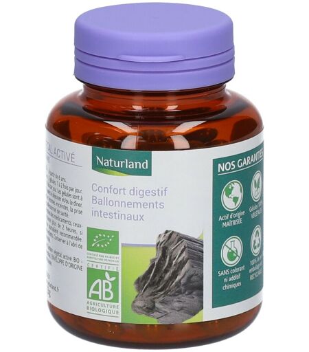 Complément alimentaire à utiliser dans le cadre d’une alimentation variée, équilibrée et d’un mode de vie sain. Le Charbon végétal activé bio contribue à réduire les ballonnements. Composition: Poudre de Charbon végétal activé BIO - Fibres de pomme BIO (Malus domestica). ENVELOPPE D’ORIGINE VÉGÉTALE : Hydroxypropylméthylcellulose. Valeur nutritionnelle: Pour 4 capsules Poudre de Charbon végétal 800 mg Conseil d'utilisation: À partir de 6 ans. Adultes et enfants de plus de 12 ans : 2 gélules, 1 à 2 fois par jour. Enfants de 6 à 12 ans : 1 gélule, 1 à 2 fois par jour. Les gélules sont à prendre avec un grand verre d’eau 1h après le déjeuner et/ou le dîner. *Chez les enfants de 6 à 12 ans et les femmes enceintes, la prise doit être ponctuelle, sur avis d’un professionnel de santé. Ce produit pouvant diminuer l’absorption des médicaments, ceux-ci doivent être administrés à distance (plus de 2 heures, si possible). Précautions d'emploi: Ne pas laisser à la portée des jeunes enfants. Conserver à l’abri de la chaleur, de la lumière et de l’humidité. Poids net: 23 g = 60 Végécaps® Fabricant: LHS-NATURLAND ZI 1re avenue 9e rue 06511 Carros Cedex France ...