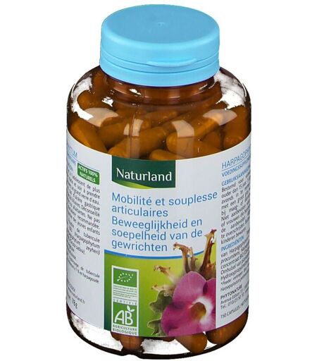 Complément alimentaire à utiliser dans le cadre d’une alimentation variée, équilibrée et d’un mode de vie sain. Complément alimentaire à base d'Harpagophytum pour maintenir un bon confort articulaire. Composition: Poudre cryobroyée de racines secondaires d'Harpagophytum (Harpagophytum procumbens) - Antiagglomérants : dioxyde de silicium, stéarate de magnésium. Enveloppe d'origine végétale : hydroxypropylméthylcellulose. Valeur nutritionnelle: Pour 2 capsules % AJR* Poudre cryobroyée de racines secondaires d'Harpagophytum 413 mg *Apport journalièr de références Conseil d'utilisation: 1 Végécap® 2 fois par jour à prendre avec un grand verre d’eau au moment des repas. Précautions d'emploi: Ne pas dépasser la dose journalière indiquée. Ne pas laisser à la portée des jeunes enfants. À conserver à l’abri de la chaleur, de la lumière et de l’humidité. Poids net: 79,6 g = 150 capsules Fabricant: LHS-NATURLAND 1re avenue - 9e rue 06511 Carros Cedex - France ...