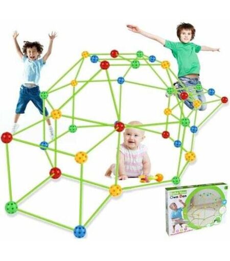 GABRIELLE Tente pour enfants , kit de construction de cabane pour enfants fort bricolage, jouet pour tente tunnel de château, intérieur extérieur (boule lumineuse 45 bâton 75 avec tente) Description TENTE DE BRICOLAGE POUR ENFANTS : Notre kit de construction de fort ultime pour enfants est conçu pour les enfants de plus de 5 ans, ils peuvent construire une grotte, jouer avec des tentes, des maisons, des igloos, des châteaux de princesse, des tunnels, une tente jouet, un bateau pirate, il suffit dajouter des feuilles pour créer un cachette MATÉRIEL : Les supports et les boules de la tente pour enfants sont en plastique de haute qualité, avec des coins arrondis et lisses, et ne blesseront pas les mains. Solide et durable, pas facile à casser FACILE À JOUER : Insérez simplement le tube en plastique dans le trou de la sphère pour fixer le tube en plastique, très simple. Ne vous inquiétez pas des enfants incapables dopérer LE FORFAIT COMPREND : Y compris 45 boule lumineuse de connexion et ...