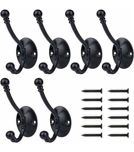 AIDUCHO Gabrielle 6 Pièces Patère, Rétro Crochet de Manteau Patère Porte Manteau Murale Crochet de Porte Métal pour Salle de Bain Cuisine Chambre Entrée, Noir