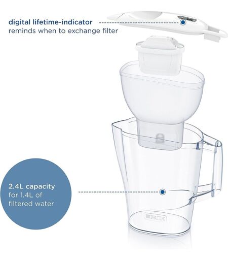 Brita Aluna Carafe Filtrante Blanche (2,4 L) Avec 1 Cartouche Maxtra Pro Tout-En-1 ¿ Carafe Avec Led Pour Réfrigérateur ¿ Maintenant Dans Un Emballage Smart Box Durable