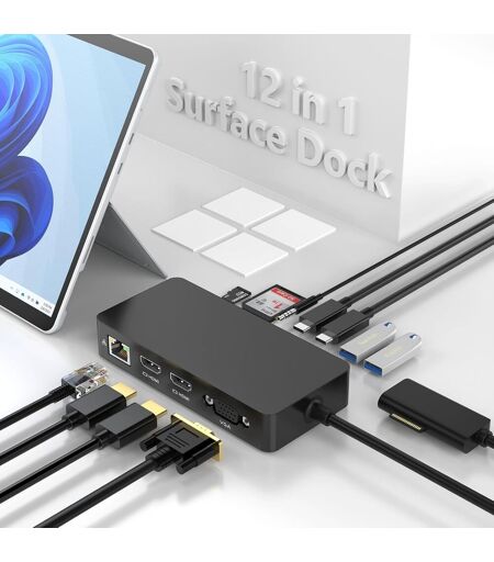 Microsoft Surface Dock,Surface Docking Station 12 En 1 Avec Double Hdmi,Vga,Usb C,Usb A,Ethernet,Audio,Fente Pour Carte Sd/Tf Pour Surface Pro,Surface Book,Surface Go