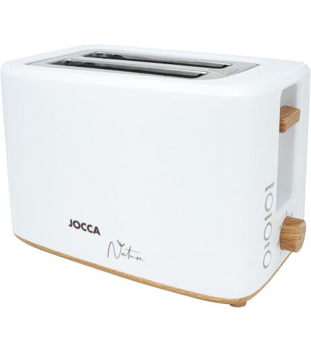 GRILLE-PAIN 2 TRANCHES Ce grille-pain dispose de 2 fentes larges et allongées, parfaites pour réchauffer différents types de pain et de vienno ries. Grâce à son système centré, le pain est grillé uniformément de tous les côtés. 7 NIVEAUX DE GRILLAGE Choisissez celui qui vous convient le mieux pour chaque oc n. 3 FONCTIONS Décongeler, Réchauffer, Annuler. SYSTÈME D'ÉCHAPPEMENT AUTOMATIQUE DES CUISSONS lorsque le programme est terminé. IDÉAL Le grille-pain Jocca de la ligne nature est idéal pour ajouter de l'équilibre et de l'harmonie à votre cuisine. ...