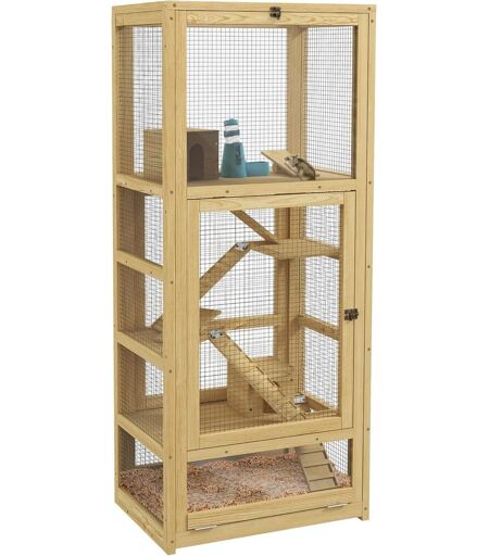 PawHut Cage Pour Hamsters Ou Souris,Petits Animaux En Bois,5 Niveaux Avec Échelle,Balançoire,Niche,Abreuvoir,Plateau Amovible,54 X 38 X 131 Cm,Naturel