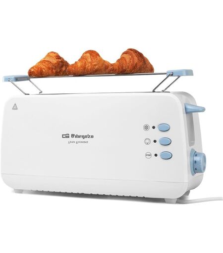 Orbegozo To 4012 - Grille-Pain À Fente Longue,Réchauffe-Viennoiseries,7 Niveaux De Grillage,Fonction De Décongélation Et De Réchauffage,Ramasse-Miettes,850 W,Blanc