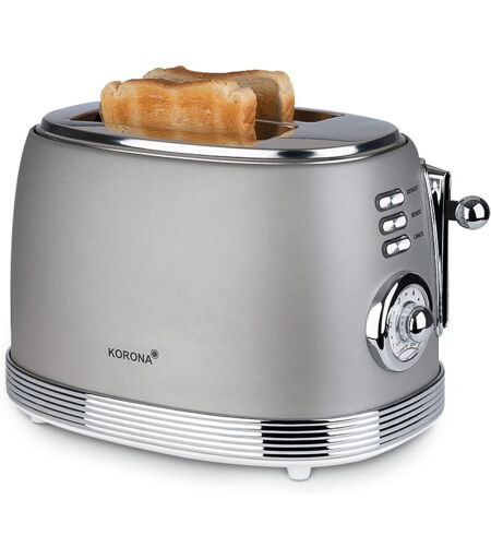 KORONA 21667 Grille-Pain 2 Tranches Design Rétro Gris 6 Niveaux De Brunissage Rétro Décongélation,Rôtir,Réchauffer 850 W Grille Réchauffe-Viennoiseries Tiroir Ramasse-Miettes