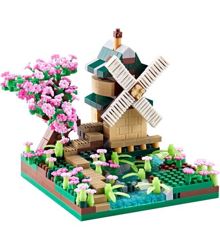 Architecture Rivière Moulin À Vent Arbre Sakura Micro Blocs De Construction Ensemble Arbres Jouets Fleurs Pour Filles, Un Kit De Modèle De Fleur De Cerisier Cadeau Bricolage