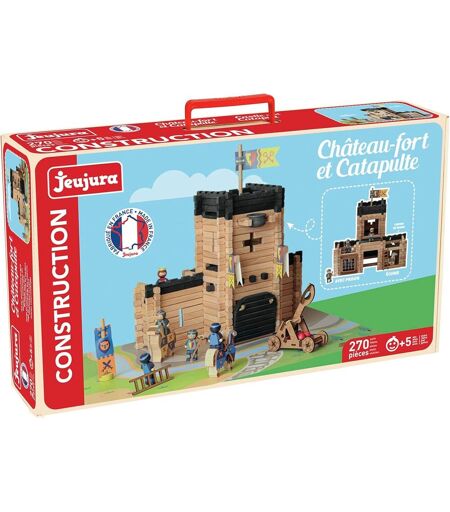 Jeujura Château Fort Et Catapulte - 270 Pièces - Jeux De Construction Dans Sa Valise En Carton - A Partir De 5 Ans - Agilité - Créativité - Manipulation - Catalogue Fourni - 8028