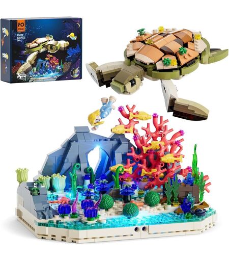 Rêve Du Récif Aux Tortues Ensemble De Construction Modulaire Avec Lumière, 835 Pcs, Modèle De Tortue Marine Avec Récif Corallien Fantastique, Pour Adolescents Et Amateurs De L'Océan, F9072