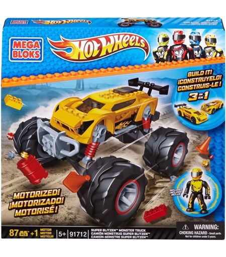 Descriptif produit Le plus grand cascadeur a besoin des plus grosses machines construis le camion monstre Super Blitzen de Hot Wheels par Bloks pour l'équipe jaune. Construis le corps de l'emblématique Super Blitzen installe ton pilote de l'équipe jaune aux commandes et connecte-le à la base spéciale motorisée. Tire et lâche la puissance de ce camion monstre qui détruira tout sur son pas ! Super Blitzen peut aussi regagner la piste sous sa forme de voiture de course e ou être reconstruit comme bolide personnalisé que n'importe quel membre de l'équipe Hot Wheels souhaiterait piloter! Parfait pour les enfants de 5 ans et plus! Caractéristiques Voiture Super Blitzen reconstructible Base de camion monstre avec commande motorisée tirer-relâcher Base de voiture de course pour construire l'emblématique Super Blitzen ou le personnal r avec d'autres pièces en laissant aller son imagination Figurine articulée de l'équipe jaune à collectionner Age minimum 5 ans Attention Ne convient pas aux enfants de moins de 36 mois ...