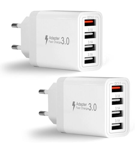 Pack De 2 Chargeurs Usb 33W Avec 4 Ports Qc3.0,Adaptateur Secteur Charge Rapide 5V 2A Pour Sam-Sung G-Alaxy,I-Phone,I-Pad,H-Tc,Hu-Awei Et Plus