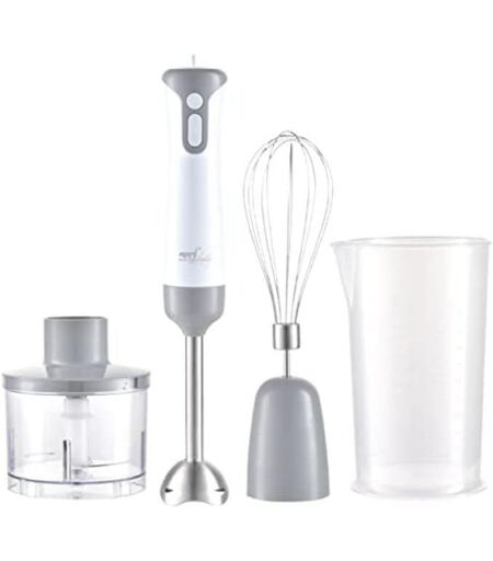 Melchioni Family Mixeur Plongeant Mixxxo Trio,Pied En Acier Rmovible,Mixeur À Immersion 2 Vitesses,Lames En Acier,Mixeur 500Ml,Fouet Et Gobelet Gradué,400W