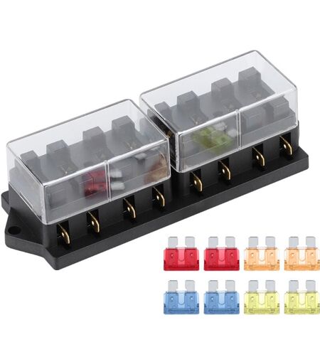 GISTUCH Bote de porte-fusible à lame longue pour voiture, 8 voies, dc 12V, 15a, avec 8 fusibles, accessoire universel pour véhicule