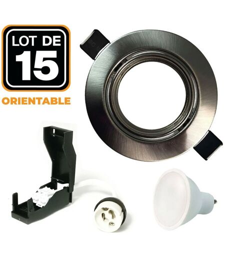 Europalamp - 15 Spots led 5W Encastrable et orientable complet en Alu brossé