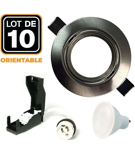 EUROPALAMP 10 Spots encastrable orientable Alu Brossé avec GU10 led de 5W eqv. 40W Blanc Neutre 4500K