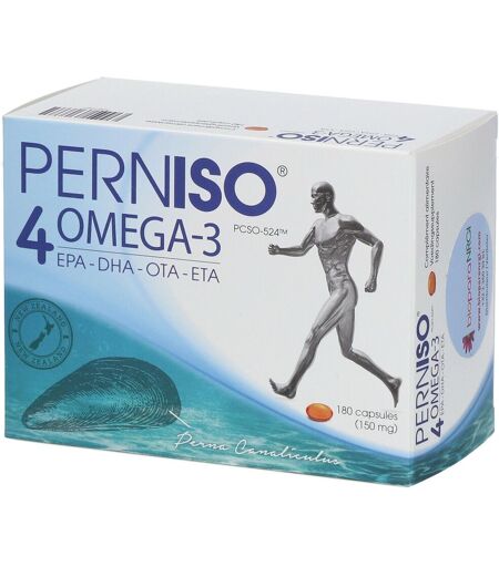 Complément alimentaire à utiliser dans le cadre d’une alimentation variée, équilibrée et d’un mode de vie sain.Perniso est le premier extrait lipidique d’origine marine à agir efficacement sur l’inflammation. Son activité est comparable à celle des anti-inflammatoires non stéroïdiens. Le perniso n'engendre pas d’effets secondaires.Cet extrait marin a une composition originale et différente des extraits lipidiques issus des poissons gras. Il contient non seulement les omega-3 EPA et DHA, mais aussi de l’OTA et de l’ETA. Ce sont ces 2 omega-3 originaux qui sont particulièrement responsables de l’action bénéfique sur l’inflammation, même à faible dose. Le perniso est extrait de la Moule aux Orles Verts de Nouvelle-Zélande (Perna Canaliculus) par un procédé breveté qui garantit qualité et stabilité. Bien-être, apaisement des douleurs, mobilité, récupération après l'effort... sont autant de bénéfices enregistrés grâce à perniso et ce, quel que soit l'âge du sujet. Le perniso est recommandé dans les cas suivants :Il contribue à réduire les raideurs et les douleurs issues de toutes les maladies inflammatoires chroniques articulaires.Il contribue à réduire l’intensité et la fréquence des crises des personnes souffrant d’asthme chronique.Il participe à la santé cardiovasculaire.Il joue un rôle dans l’équilibre des acides gras dans le corps.Articulations souples.Anti-inflammatoire naturel (sans effets secondaires).IngrédientsIngrédients : 1 capsule Énergie - 6,7 Kj (1,6 cal) Glucide - 43,4 mg Lipides - 150 mg Capsules - gélatine, glycerol, sorbitol, sans lactose, ni gluten. Conseils d'utilisationsPrendre avec le repas. Suivre les recommandations d'un médecin pour la posologie et les durées. Il est généralement recommandé de prendre, dans un premier temps, 2 capsules par jour. Par la suite, la prise peut être diminuée à 1 capsule par jour pour des articulations saines. Précautions d'emploiCe produit est un complément alimentaire. Il ne se substitue jamais à une alimentation variée et équilibrée, ni à un mode de vie sain. Ne pas dépasser la dose journalière recommandée. Tenir hors de portée des enfants. ...