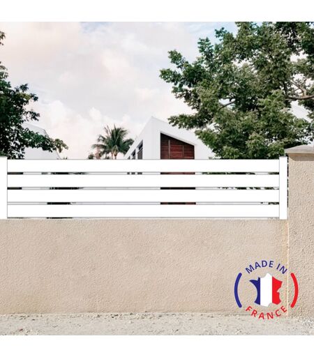 Packit - Clôture aluminium 4 lames modèle ajouré en kit Dimensions L.2107mm (poteaux compris) x H.455mm couleurs Blanc ral 9010