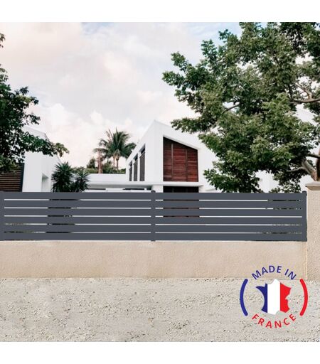 PACKIT Clôture aluminium 6 lames modèle ajouré en kit - 2 éléments Dimensions L4154 mm (poteaux compris) x H675mm couleurs Gris ral 7016