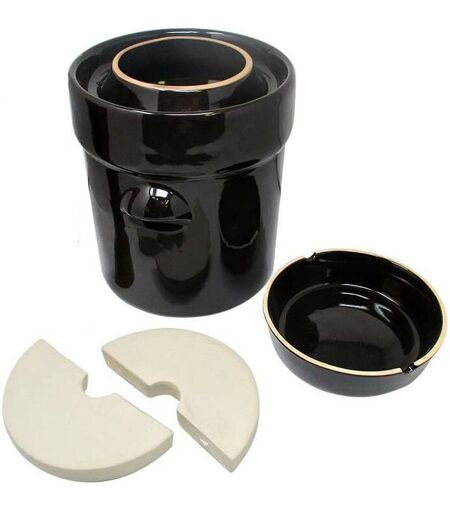 Pot lactofermentation pour environ 5 choux. Pot en grès émaillé idéal pour lacto-fermenter vos légumes et réaliser de la choucroute maison. Il est livré avec deux pierres en demi-lune qui viendront appuyer sur vos légumes râpés durant la fermentation. Ainsi, l'air sera extrait des couches de légumes qui pourront rendre le jus nécessaire à leur macération. Le pot est équipé d'un joint à eau pour assurer son étanchéité. Capacité de 3 à 40L. Caractéristiques : En grès émaillé 2 pierres demi-lune pour alourdir - La lacto-fermentation ou le saumurage des légumes est un mode de conservation écologique puisqu'elle ne requière aucune énergie hormis la vôtre. Commencez par râper vos légumes à l'aide d'une mandoline, puis déposez-en une couche au fond du pot. Recouvrez de sel et éventuellement d'aromates, et pressez l'ensemble à l'aide d'un pilon pour chasser complètement l'air. Remplissez votre pot en alternant légumes râpés, sel et pression. Le jus des légumes doit venir recouvrir l'ensemble. ...