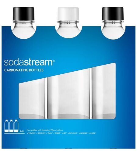 Ensemble de trois bouteilles Sodastream de 1 litre, compatibles avec plusieurs modèles de saturateurs SodaStream. Fabriquées en PET durable avec bouchon hermétique, elles conservent vos boissons pétillantes fraîches. Idéal pour une utilisation à la maison, ce pack allie praticité et qualité. ...