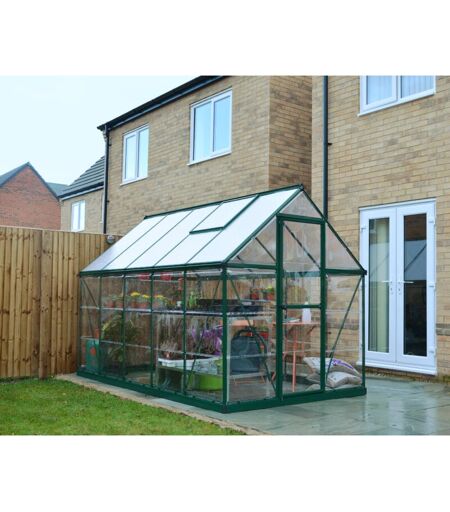 Description générale Cette serre de jardin en polycarbonate Hybrid, d'une surface de 5,66 m², est idéale pour les jardiniers disposant d'un espace limité. Elle permet de faire pousser des semis, des plantes exotiques et d'aménager un coin potager. Conçue avec une armature en aluminium robuste et des panneaux de polycarbonate traités anti-UV, elle allie esthétique et durabilité, tout en offrant une excellente transmission lumineuse. Spécifications techniques Dimensions extérieures (L x P x H) : 306 x 185 x 208 cm Dimensions de la porte : 56 x 161 cm Épaisseur du toit : 4 mm Épaisseur des parois : 0,7 mm Surface extérieure : 5,66 m² Poids net : 46,53 kg Capacité de charge : jusqu'à 75 kg/m² de neige Compatibilité et accessoires Base en acier galvanisé incluse pour une stabilité optimale Accessoires en option : étagères, kit d'ouverture automatique d'évent de toit, système d'irrigation goutte à goutte, etc. Installation Installation facile grâce à un système d'assemblage de panneaux ...