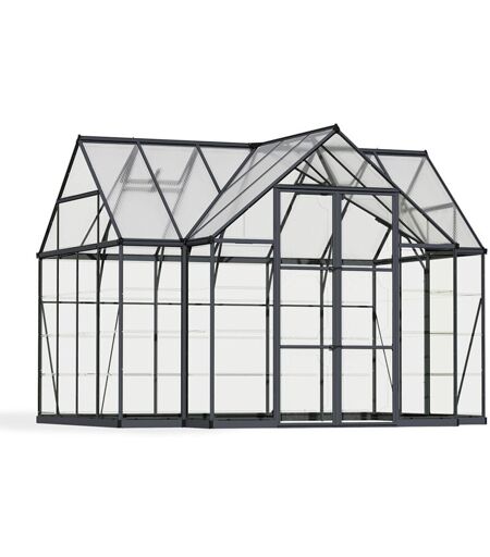 Palram - Canopia serre aluminium Victory Gris 306x361x270 cm Serre premium et orangerie en un — ; la serre Victory de Palram — ; Canopia convainc par son design exclusif et ses matériaux de qualité! S'inspirant du style architectural de l'époque victorienne, la serre Victory de Palram — ; Canopia apporte une touche de nostalgie dans ton jardin. Un socle en acier constitue la base du cadre stable en aluminium, les deux composants nécessitent peu d'entretien et sont résistants à la corrosion. Pour le vitrage, 2 panneaux en polycarbonate différents et incassables sont utilisés : le toit est recouvert de plaques alvéolaires en polycarbonate 100 % résistantes aux UV. Les parois latérales sont composées de panneaux en polycarbonate cristallin avec une transmission de lumière de 90 % ! Deux fenêtres d'aération assurent la circulation de l'air et favorisent ainsi un climat intérieur optimal. Un autre avantage est la hauteur particulière de l'avant-toit et du faîte : tu peux ...