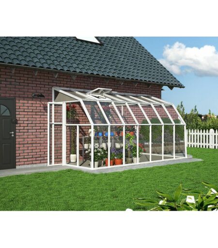 Description générale Profitez de votre extérieur en toute sécurité avec la véranda SUN ROOM de Palram - Canopia. Cette structure élégante et classique, facile à assembler, est conçue pour vous offrir un espace confortable tout au long de l'année. Elle s'intègre harmonieusement à tout style de décoration intérieure et constitue un lieu idéal pour se détendre, recevoir des amis ou organiser des repas en famille. En hiver, elle peut également servir de serre de loisirs. Spécifications techniques Dimensions extérieures (P x L x H) : 200 x 200,5 x 247 cm Dimensions intérieures (P x L x H) : 183,5 x 183,5 x 234,5 cm Surface extérieure : 3,9 m² Surface intérieure : 3,37 m² Poids net : 75,9 kg Épaisseur du polycarbonate : Toit : 4 mm, Parois : 6 mm Structure : Résine et aluminium Coloris : Blanc Hauteur de la porte : 185,5 cm Hauteur du faîtage : 125 cm Compatibilité et accessoires Peut être utilisée sur des bases en béton, des dalles autobloquantes, un plancher en bois ou un support en ...