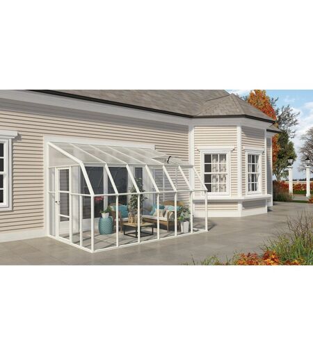 Description générale Profitez de votre extérieur en toute sécurité avec la pergola fermée SUN ROOM de Palram - Canopia. Cette structure élégante et moderne, facile à monter soi-même, constitue un véritable ajout naturel à votre maison. Elle offre un espace confortable pour se détendre, organiser des repas ou servir de serre pendant l'hiver, tout en ajoutant de la lumière et du style à votre environnement. Spécifications techniques Dimensions ext. hors tout (P x L x H) : 260 x 258 x 266 cm Dimensions ext. hors tout au sol (L x P) : 250 x 254 cm Dimensions int. (P x L x H) : 247 x 249 x 259 cm Dimensions int. au sol (L x P) : 247 x 249 cm Surface ext. : 6,4 m² Surface int. : 6,2 m² Poids net : 123,2 kg Épaisseur du polycarbonate : Toit : 4 mm, Parois : 6 mm Structure : résine et aluminium Coloris : blanc Hauteur porte : 187 cm Hauteur faitage : 125 cm Compatibilité et accessoires Cette pergola est conçue pour s'harmoniser avec divers styles d'intérieur et peut être utilisée avec des ...