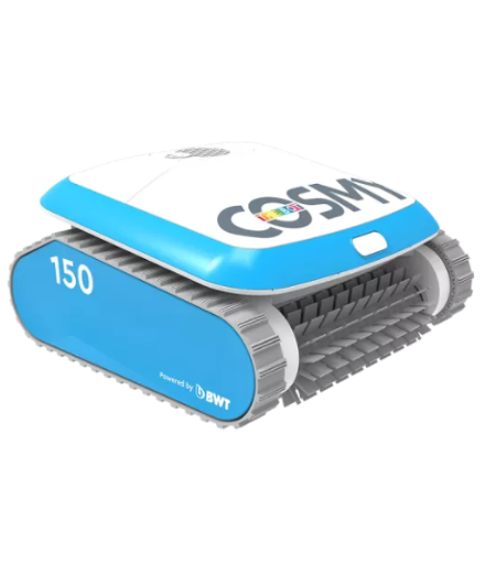 Robot électrique de piscine BWT Cosmy The Bot Avec le Robot électrique de piscine BWT Cosmy The Bot, vous entrez dans un nouvel univers, où l'efficacité rime avec style et élégance, où la taille cède la place à la finesse et à l'intelligence ! Le robot Cossy nettoie le fond et les parois de la piscine dans le but de collecter les impuretés ou saletés et les débris dans ses filtres internes ! Technologie moderne : Réducteur planétaire à deux étages combiné à deux moteurs d'entraînement pour une fiabilité inégalée. Compact et léger : Son poids léger et sa taille compacte rendent le Cosmy particulièrement facile à utiliser, ce qui permet de le soulever facilement dans et hors de la piscine. Performant : nettoie de manière fiable le fond, les parois et la ligne d'eau des piscines jusqu'à 10 mètres de long en 2,5 heures maximum, grâce à un mode de déplacement logique. Commande générale par App : configuration et commande simples du robot via l'application Cossy gratuite correspondante. Couleurs : Disponible individuellement dans votre couleur préférée grâce à des kits de changement de couleur pratiques. Disponible en 3 versions : Cosmy The Bot 100, 150, 200 Avantages du Robot électrique de piscine BWT Cosmy The Bot selon le modèle Ils peuvent être différents selon le modèle du robot Cosmy ! Cosmy 100 Cosmy 150 Cosmy 200 Cosmy 250 Nettoie le fond de la piscine Technologie d'engrenage planétaire Léger (moins de 6 kg) Puissant Personnalisable Nettoie le fond, parois et ligne d'eau Technologie d'engrenage planétaire Léger (moins de 6 kg) Puissant Personnalisable Nettoie le fond, parois et ligne d'eau Application smartphone 16m de cable Technologie d'engrenage planétaire Léger (moins de 6 kg) Puissant Personnalisable Nettoie le fond, parois et ligne d'eau Application smartphone 18m de cable Technologie d'engrenage planétaire Léger (moins de 6 kg) Puissant Personnalisable Caractéristiques du Robot électrique de piscine BWT Cosmy The Bot Modèle Cosmy 100 Cosmy 150 Cosmy 200 Cosmy 250 Taille du bassin 8 m 10 m 12 m 12 m Durée du cycle 1h30 1h30 1h30, 2h ou 2h30 1h30, 2h ou 2h30 Commande à distance x x Application smartphone Application smartphone Type de nettoyage Fond Fond, parois et ligne d'eau Fond, parois et ligne d'eau Fond, parois et ligne d'eau Type de filtre Mono-filtre Mono-filtre Filtration double-couche Filtration double-couche Type de brosses Brosses PVC Brosses PVC Brosses PVC Brosses PVC Longueur du câble 12 m, câble flottant 16 m, câble flottant 16 m, câble flottant 18 m, câble flottant Dimensions 39,5 x 36,5 x 20 cm 39,5 x 36,5 x 20 cm 39,5 x 36,5 x 20 cm 39,5 x 36,5 x 20 cm Poids 5,75 kg 5,75 kg 5,75 kg 5,75 kg Alimentation électrique 29 volt, Mars + App 29 volt, Mars + App 29 volt, Mars + App 29 volt, Mars + App Consommation 150 Watt 150 Watt 150 Watt 150 Watt Durée de garantie 2 ans 2 ans 2 ans + 1 an additionnel 2 ans + 2 ans additionnels Vous aimez le changement ? Cosmy aussi ! Découvrez le Kit Extra Color pour robots Cosmy disponible sur... ...