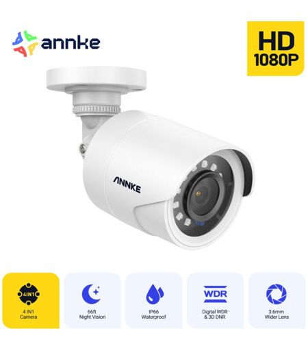 ANNKE 4-en-1 1080p caméra de Surveillance AHD/TVI/CVI/CVBS système Bullet Blanc avec imperméable IP66 système intérieur extérieur 2MP