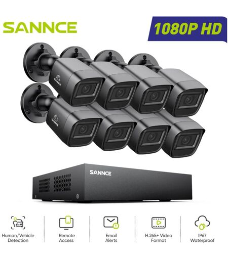 Système de sécurité filaire extérieur 1080P 8 canaux 8 caméras,Vision Nocturne Accès à Distance Kit de Vidéosurveillance - Sannce
