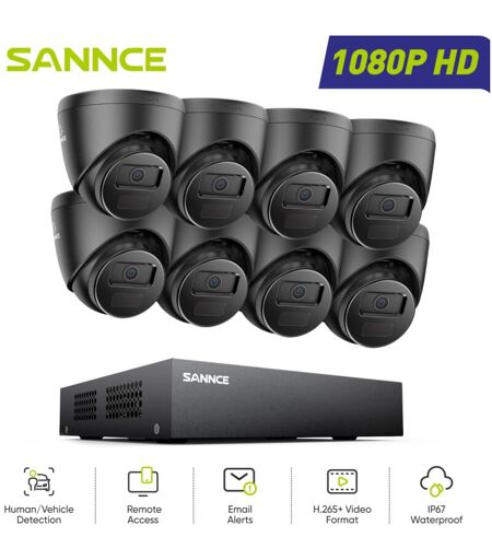 Kit de Vidéosurveillance Extérieur 1080P 8 canaux 8 caméras Turret 2MP,Accès à Distance Vision Nocturne Système de Caméra de Sécurité Filaire - Sannce