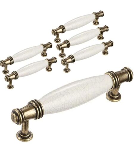 Matériaux : alliage de zinc et céramique. L'alliage de zinc a une texture dure et ne se décolore pas et ne rouille pas facilement, et a également une forte capacité de charge. La céramique est également de haute qualité et est très robuste et ne se détache pas facilement. Dimensions : centre des trous : 120 x 21 x 33 mm - Centre des trous : 128 mm - 150 x 21 x 34 mm Contenu : 6 poignées de placard avec 12 vis de fixation La vis mesure 22 mm de long. Convient pour des planches de 18 mm. Si vous avez besoin de vis plus longues, veuillez nous contacter. Sans frais supplémentaires. Ces poignées d'armoire en céramique pour porte de placard, tiroir, placard, armoire, armoire à vin, meubles et les rendent plus attrayantes que les autres. Transformez instantanément vos armoires, armoires, tiroirs, salles de bains, et plus encore avec cet ensemble de poignées élégantes et vintage. Ces poignées élégantes vous permettent de transformer vos armoires d'une manière rapide et facile qui met à jour ...