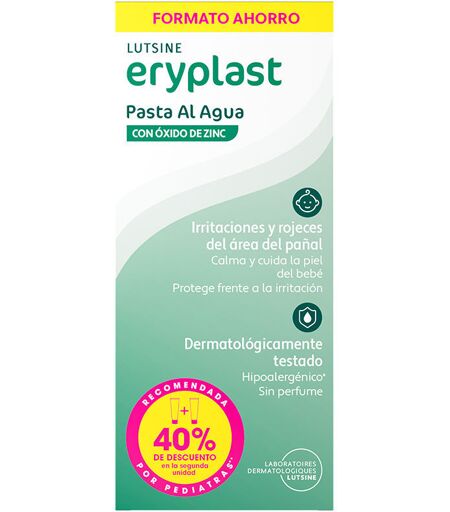 ERYPLAST pâte à base d’eau. Crèmes et poudres pour le change. Type de peau: Sensible. Textures: Crème. Formulation: Hypoallergénique, Sans parfum. Propriétés: Apaisantes, Hydratantes. Produit de parapharmacie. Les tendances: Glicerina, Zinc ...