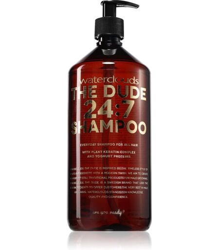 Waterclouds The Dude Shampoo, 1000 ml, Shampoings pour homme, Le shampooing Waterclouds The Dude nettoie efficacement le cuir chevelu, il lave parfaitement les cheveux et leur redonne leur beauté naturelle. Le produit : lave les cheveux et nettoie le cuir chevelu donne de la brillance et du volume à vos cheveux enveloppe vos cheveux d’un agréable parfum Mode d’emploi : Appliquez une quantité raisonnable de shampooing sur les cheveux mouillés. Faites mousser, puis rincez abondamment. Évitez tout contact direct avec les yeux. ...