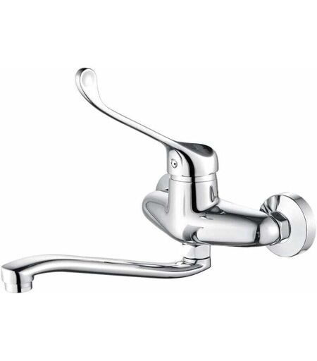 Sollbry - Bari - Mitigeur de Lavabo avec Poignée Médicale, Robinet de Salle de Bain pmr, Chrome, Argent