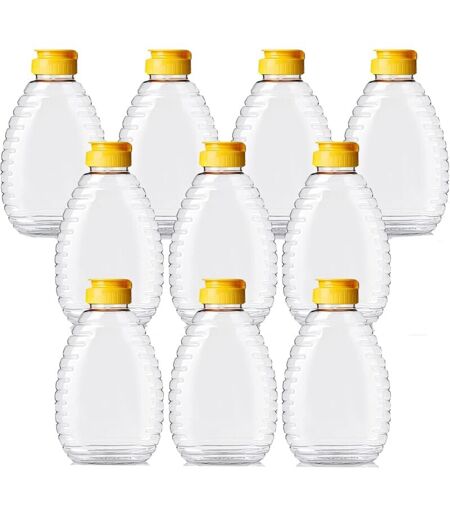 SOLLBRY 10 Pcs Bouteille de Compression de Miel, Distributeur de Miel Bouteille à Sauce Bouteille à Condiments Flacons Plastique avec Bouchon Sauce