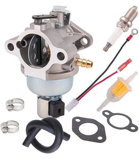 Carburetor compatible with John Deere L110, LT155, and LT160 Lawn Mowers, ensuring seamless integration and enhanced performance. Engine Fit: Designed to be Compatible with Kohler 15hp and 17.5hp engines, including models SV530, SV540, SV590, and SV600 Command PRO, providing reliable and efficient operation. Complete Installation Kit: Package includes 1x carburetor, 2x gaskets, 1x fuel hose (I.D. 1/4'' O.D. 3/8¡¯¡¯), 4x hose clamps, 1x shut-off valve, 1x fuel filter, 1x connection wire, 1x cable tie, and 1x spark plug for a comprehensive installation. Perfect Replacement: Center-to-center mounting hole distance of 51mm / 2'' and a fuel nozzle O.D. of 7.9mm / 0.31'' ensure a perfect fit for replacing worn-out carburetors. Replaces Multiple Parts: Direct replacement Compatible with Kohler part numbers 20-853-33-S, 20-853-01-S, 20-853-02-S, 20-853-14-S, 20-853-16-S, 20-853-42-S, 20-853-43-S and John Deere part numbers AM119661, AM121863, AM121865, AM128816, AM132033, AM132199. ...