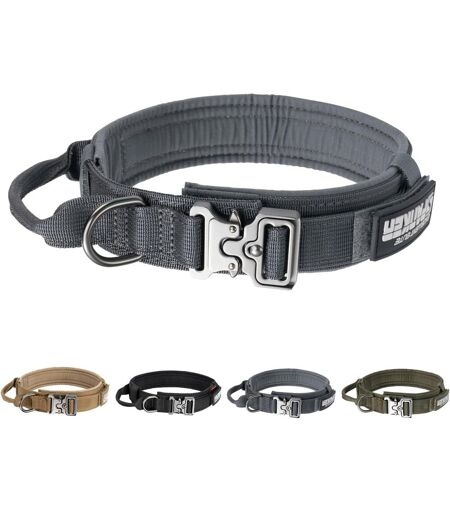 Excellent Elite Spanker Collier D'entraînement Militaire Tactique En Nylon Avec Boucle En Métal Et Poignée De Contrôle Pour Chiens De Moyenne Et Grande Taille Avec Écussons(Rgn-L)