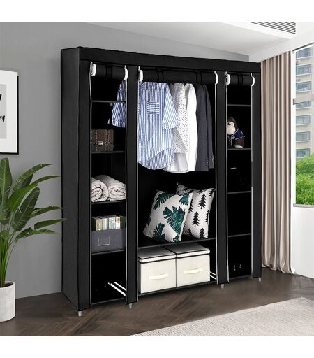Description : 1. PIECES PLASTIQUES SOLIDES - Les pièces plastiques de bonne qualité, durable, solide et sans odeur, résistant au chaleur, montage très facile. 2. HOUSSE INTISSE RESISTANTEH - Housse et les étagères en tissus non-tissés de 75g, respirant, résistant à l'humidité, flexible, léger, no toxique, inodore. Sous la charge uniforme, chaque paroi peut supporter au plus 5 kg de charge. La charge maximale de la barre de pendaison est de 15 kg, ce qui mieux répond à vos besoins 3. PORTE ROULEE - Désign avec 3 portes roulées, plus facile à ouvrir et fermer les portes et antipoussière pour protéger vos affaires. S'équipé des s et zips pour empêcher la tombe des portes. Couture des fermetures éclaires renforcée, plus résistante. 4. CADRE METALLIQUE STABLE - La structure métalliques est antirouille, très solide et stable. 5. USAGE AMPLE - Grande capacité, facile à monter et démonter, gagner de l'espace, trés bon look , un bel espace, un trés bon produit d'appoint pour votre chambre, ...