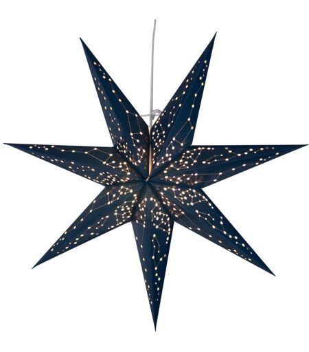 L'étoile en papier GALAXY est composée de papier bleu à sept pointes dans lesquelles se trouvent de petites découpes d'images d'étoiles. L'étoile peut être facilement combinée avec une ampoule E14 pour créer une atmosphère de Noël chaleureuse dans n'importe quel espace de vie. Avec un diamètre de 60 cm et une longueur de câble de 3,5 mètres, les lumières de Noël sont idéales comme décoration de fenêtre pour créer une ambiance festive. L'ampoule E14 requise n'est pas incluse dans la livraison. ...