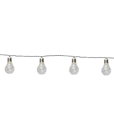 Guirlande lumineuse solaire « Glow », capteur crépusculaire, clignotante, transparente, blanc chaud, L 180 cm Guirlande lumineuse décorative extérieure à ampoules en plastique avec lumière clignotante ou fixe 10 sources lumineuses Notre guirlande lumineuse LED « Glow » , composée de 10 ampoules transparentes et d'un capteur crépusculaire, est idéale pour un éclairage décoratif de votre extérieur. Les ampoules de forme classique apportent un look rétro tendance à votre jardin, balcon ou terrasse, et leur lumière blanche et chaude crée une atmosphère agréable qui invite à la détente. Les guirlandes lumineuses d'extérieur sont équipées d'un capteur crépusculaire qui les active automatiquement à la tombée de la nuit. Chaque ampoule en plastique contient un filament de 5 LED en forme de goutte de rosée, qui illuminent les ampoules de l'intérieur. Dimensions : (L) 180 cm x (H) 10 cm x (P) 6 cm Matériau : plastique, fil de fer Couleur : clair, transparent Sources lumineuses : 10 ampoules, ...
