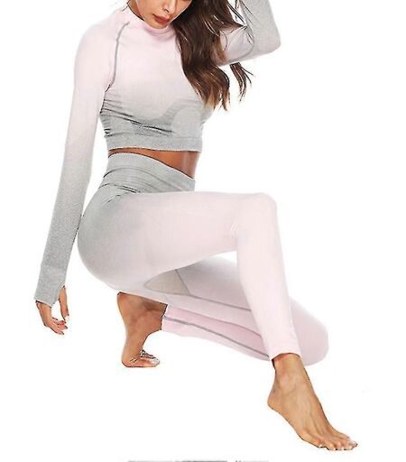 2 Pièces Femmes Yoga Vêtements Ensemble Soutien-Gorge Gilet Hauts Pantalon Taille Haute Sport Pantalon Leggings-Gris Rose-L