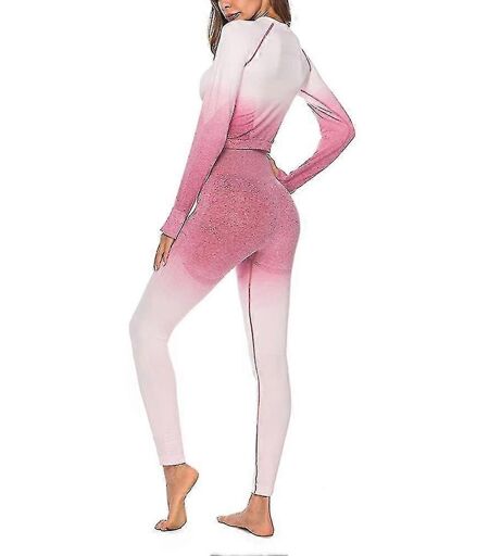 2 Pièces Femmes Yoga Vêtements Ensemble Soutien-Gorge Gilet Hauts Pantalon Taille Haute Sport Pantalon Leggings-Rose Rouge-L
