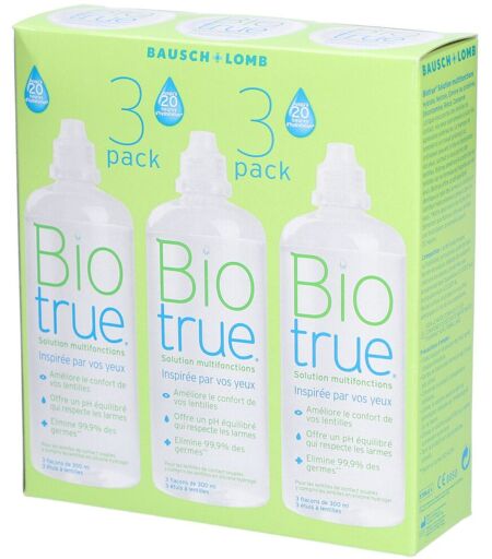 Essayez la solution multifonctions Biotrue dès aujourd’hui - et faites l’expérience d’un produit d’entretien pour lentilles innovant, inspiré par la biologie de vos yeux. Biotrue élimine les dépôts de protéines et est indiqué pour traiter, nettoyer, décontaminer, rincer et conserver les lentilles souples, y compris les lentilles en silicone hydrogel. ...
